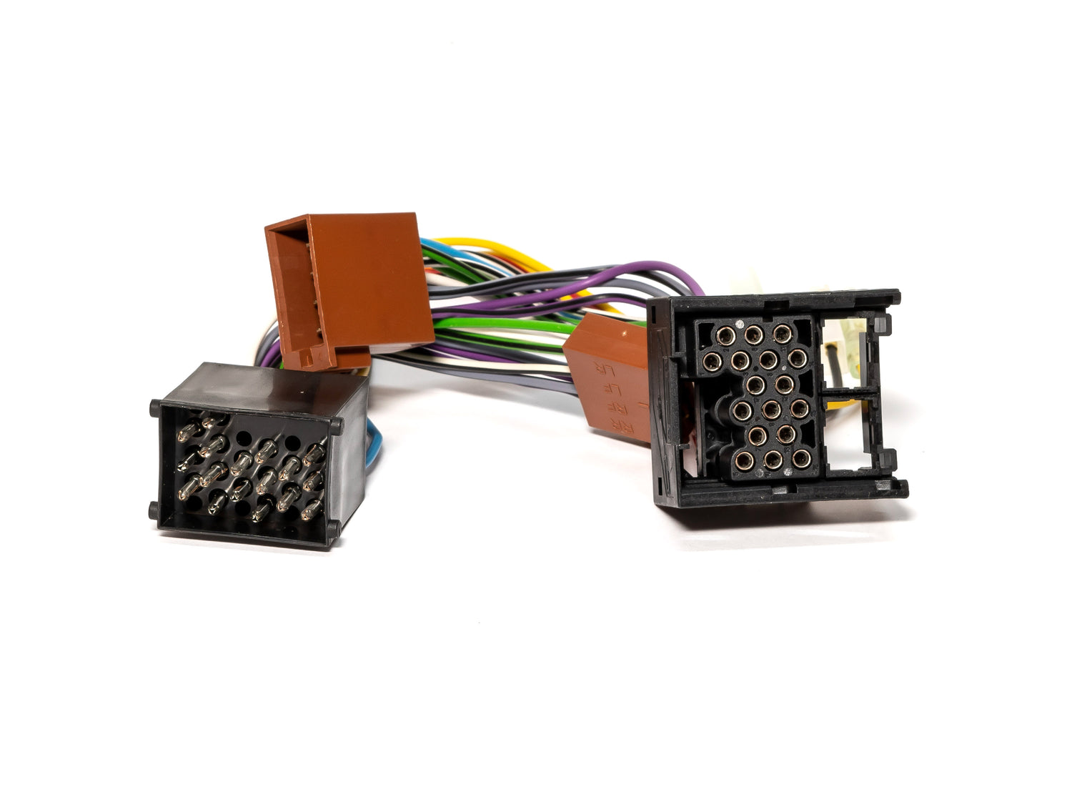 Der ISO-Radio-Adapter besteht aus je einem fahrzeugspezifischem Stecker & einer entsprechenden Kupplung und wird zwischen Serien-Auto-Radio und dessen Original-Kabelbaum gesteckt (Y-Kabel). Darüber hinaus sind jeweils ein 8-pol ISO-Stecker und eine 8-pol Kupplung (Lautsprecher-Stecker) vorhanden.