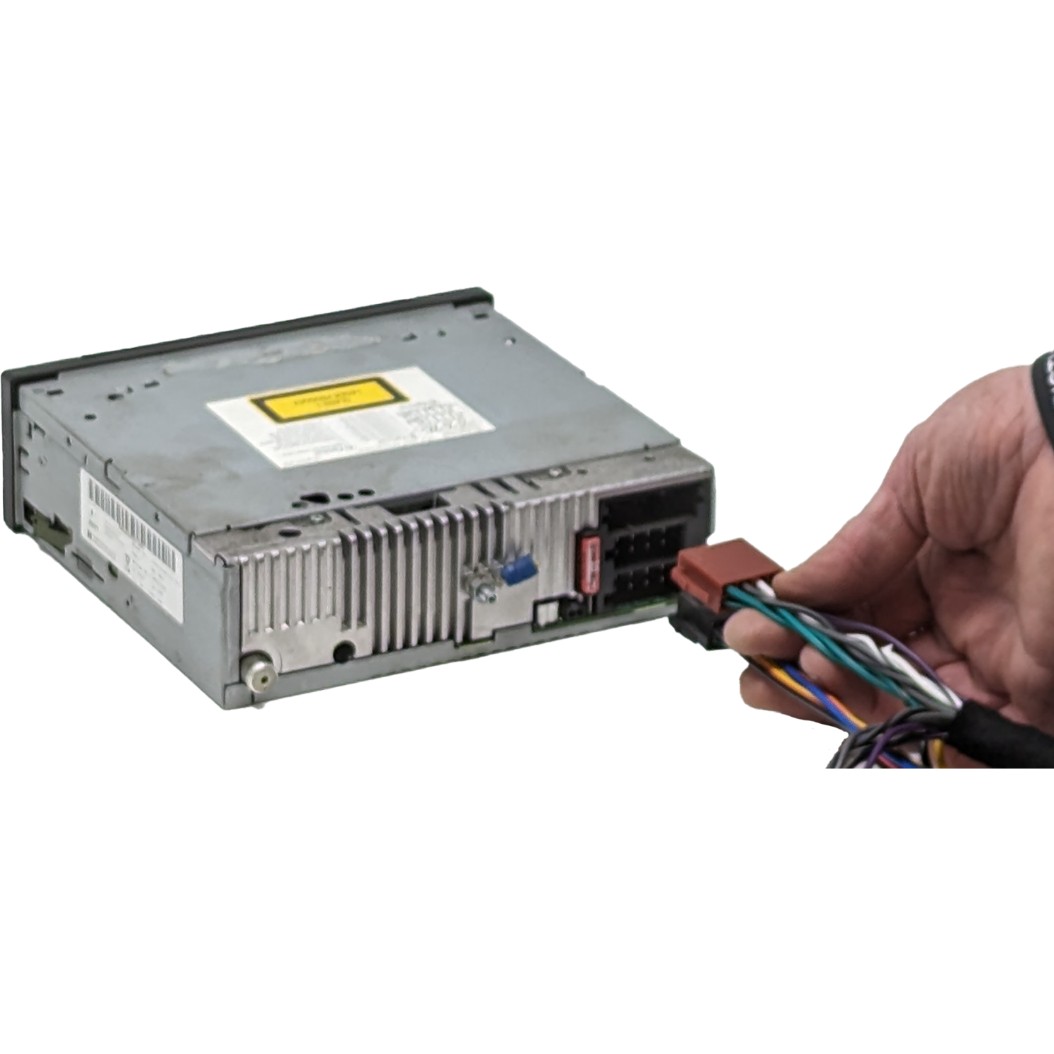 Auf der Rückseite der Porsche-Radio-Einheit befinden sich ISO-Steckverbinder für die Strom-Versorgung und die Lautsprecher-Anschlüsse. Diese löst du von der Radio-Unit, damit das ISO-Anschluss-Kabel des Verstärkers dazwischen gesteckt werden kann.